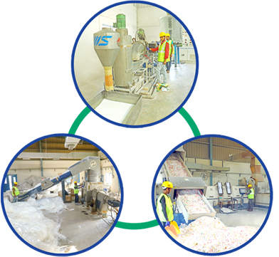 Our recycled granules are used in Injection moulding, Film, ACP panel, Garbage bag, Industrial film liners, and Carry bags.